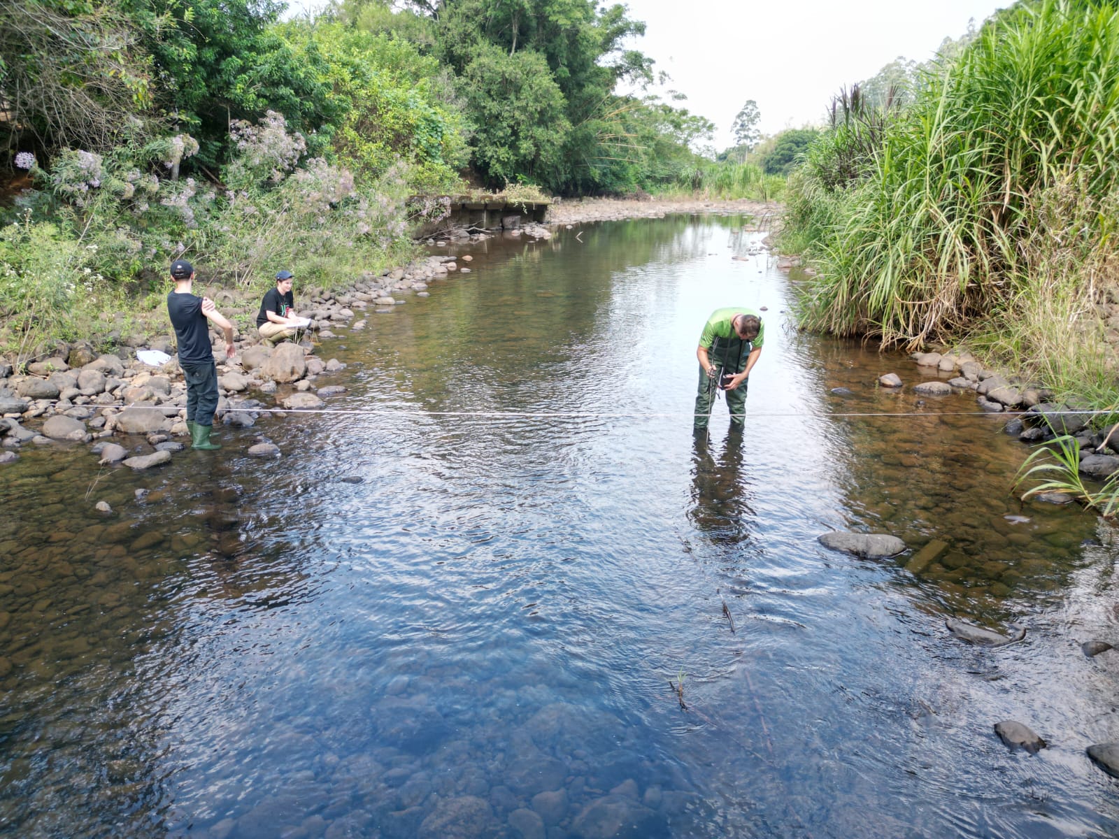 A ação teve como objetivo promover a conscientização dos alunos sobre a importância dos recursos hídricos, integrando teoria e prática por meio de atividades de campo no Rio Manoel Alves. Durante a atividade, foram realizadas medições de vazão e coletas de água, permitindo aos estudantes compreender, de forma aplicada, como são avaliadas as características quantitativas e qualitativas dos rios.
