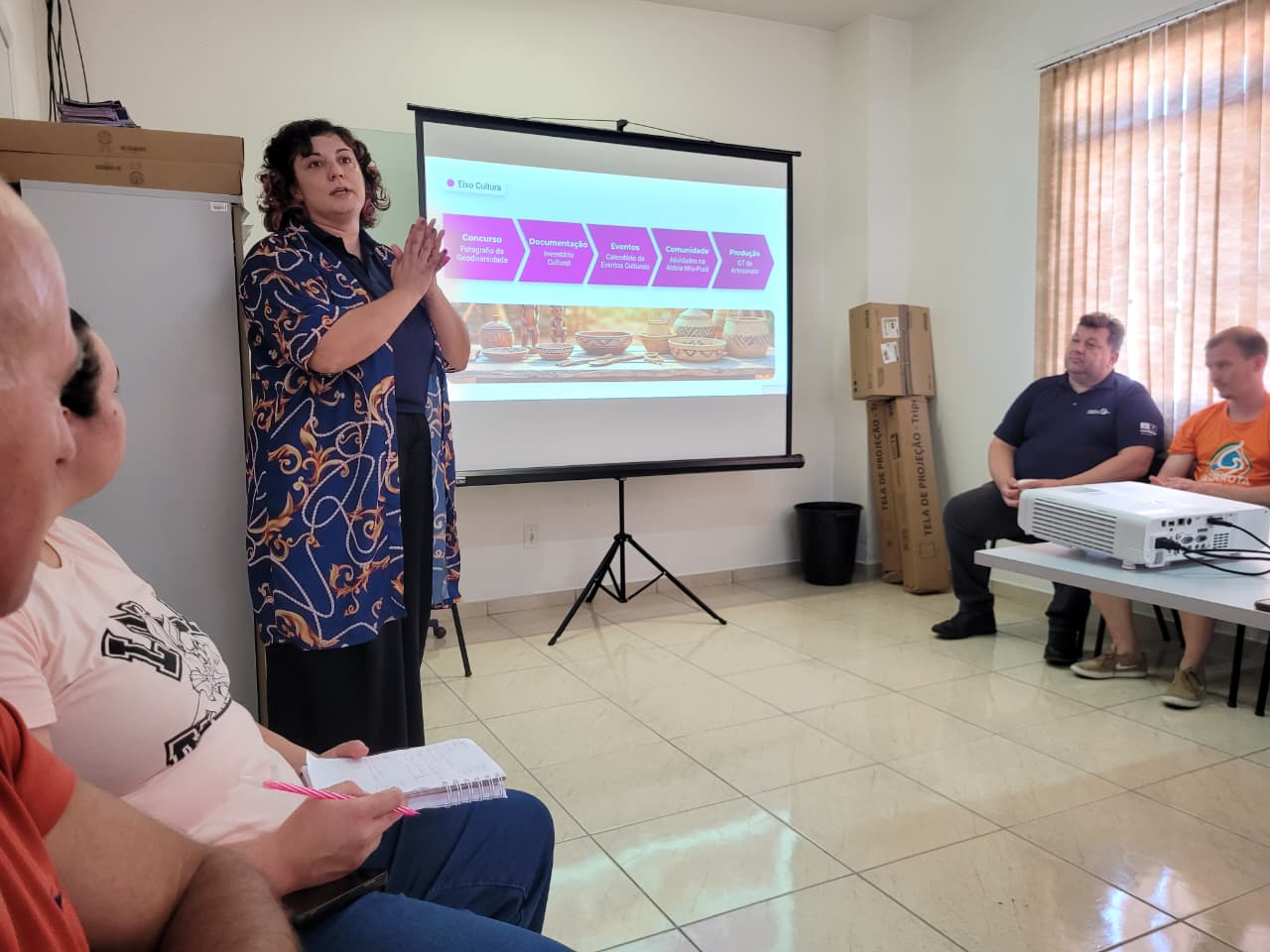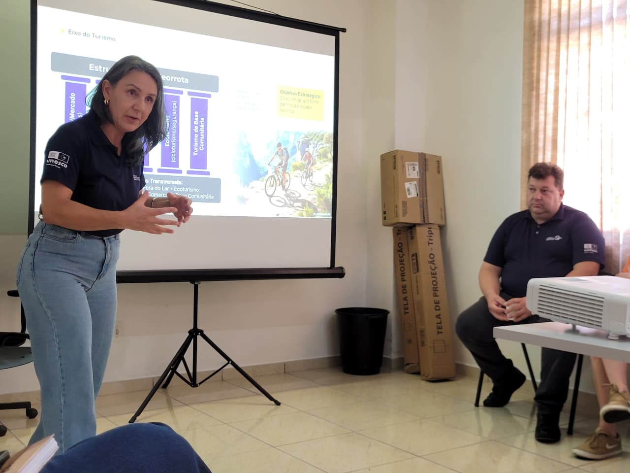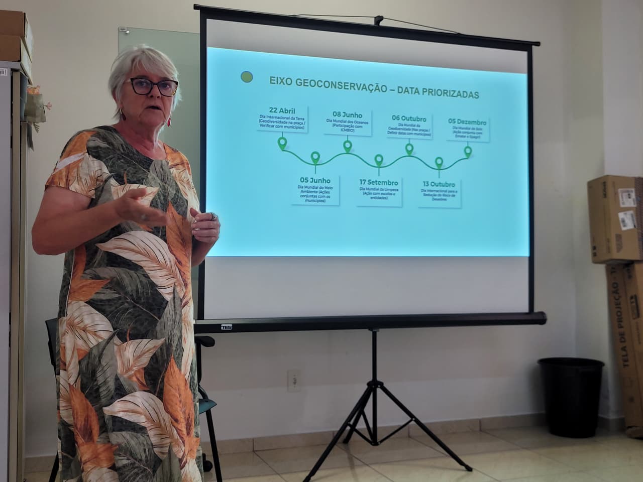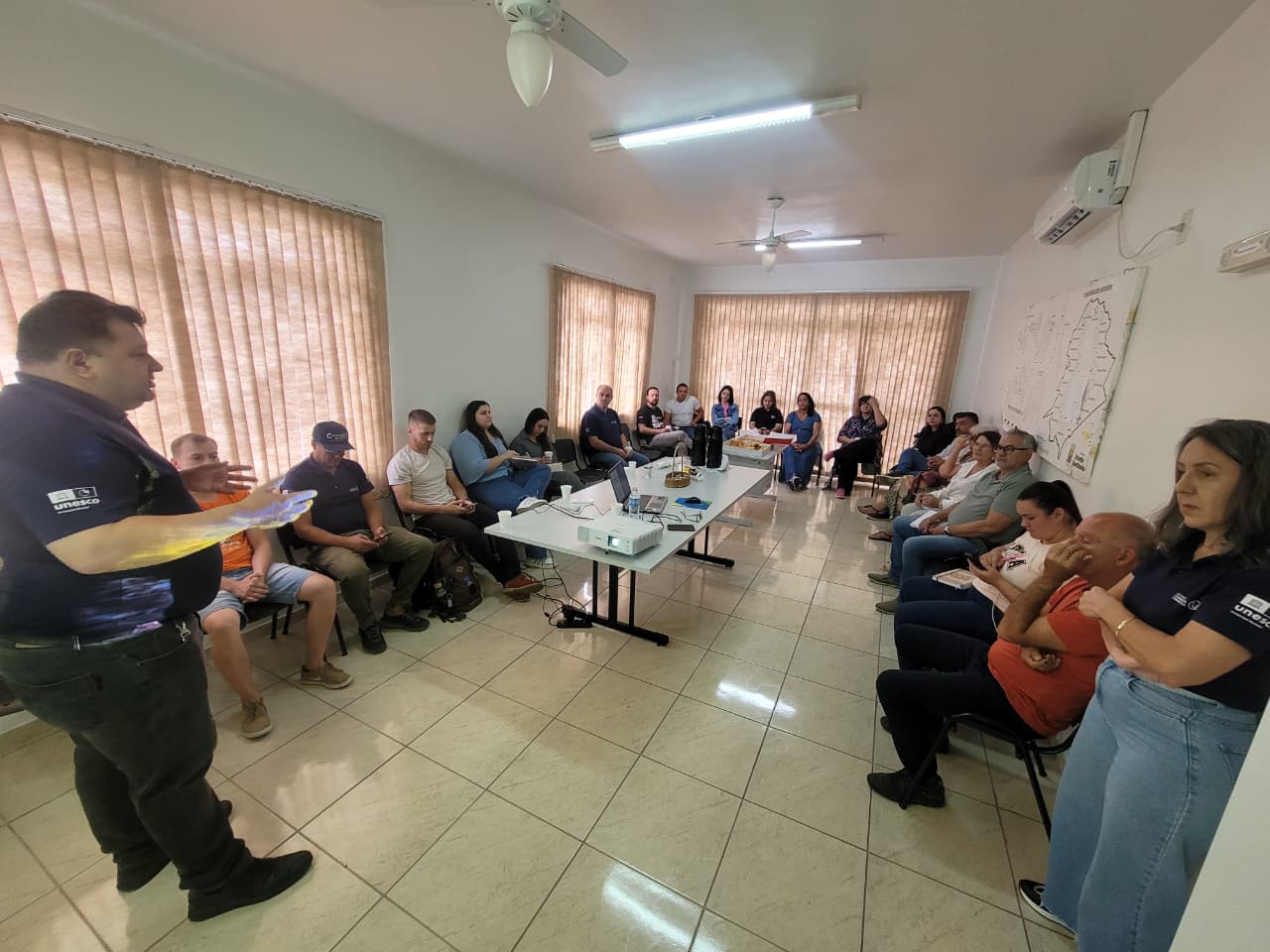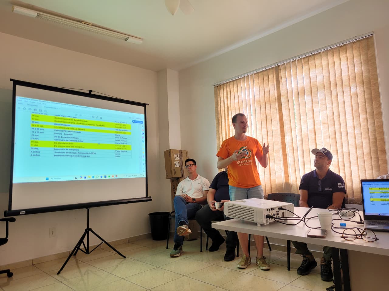 Durante a sessão, os coordenadores e técnicos responsáveis pela gestão de cada área fundamental do Geoparque apresentaram as atividades previstas. O planejamento dos eixos foi detalhado por Beth Rocha e Gustavo Simão, à frente da Geoconservação; Edinéia Pallu, na área de Turismo e Desenvolvimento Econômico; Andréa Mello e Zazá Clezar, no eixo da Educação; Priscila Gamba, na Comunicação; e Renata Job, liderando o Grupo de Trabalho da Cultura. As apresentações reforçaram o compromisso com a gestão integrada e a transversalidade entre as diferentes áreas de atuação no território.