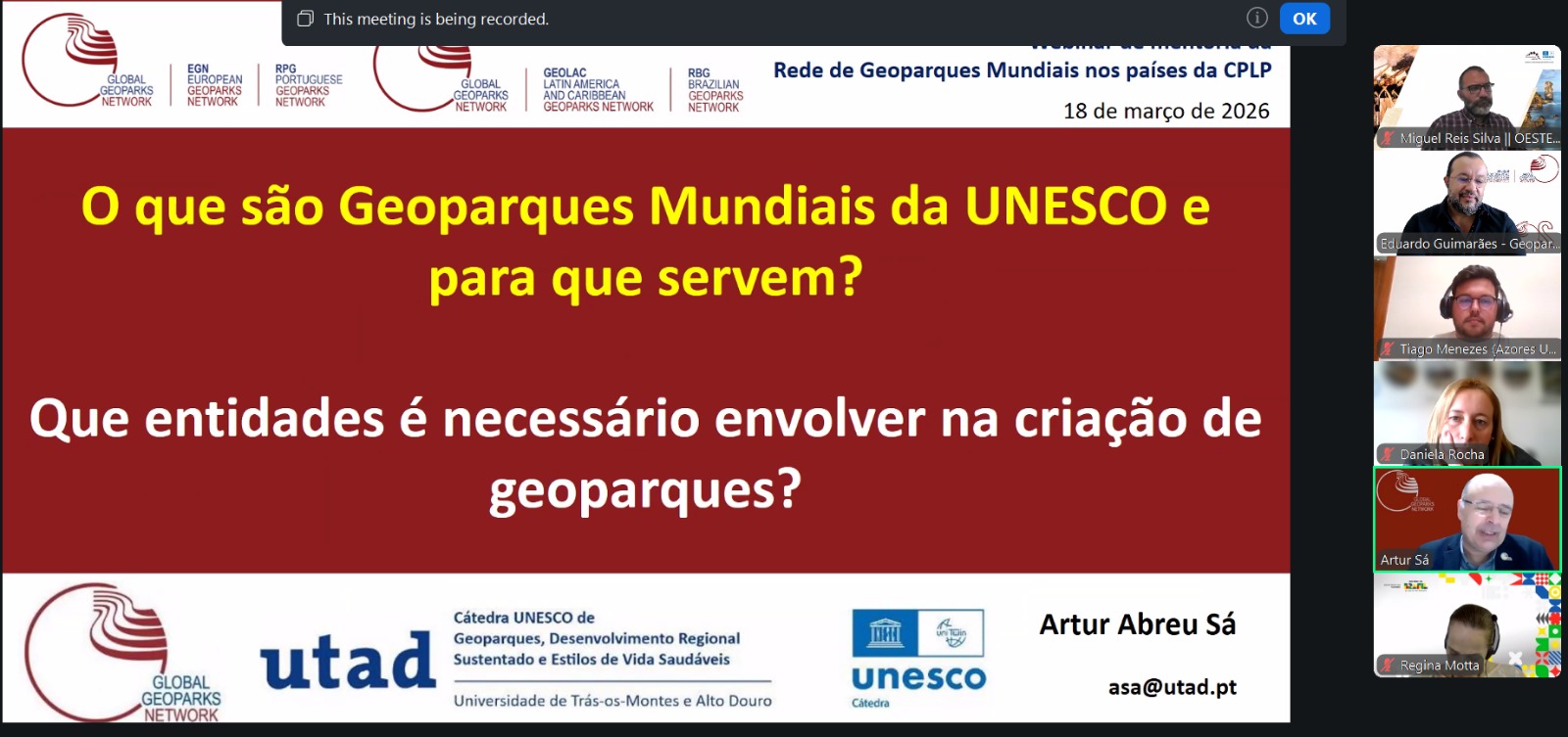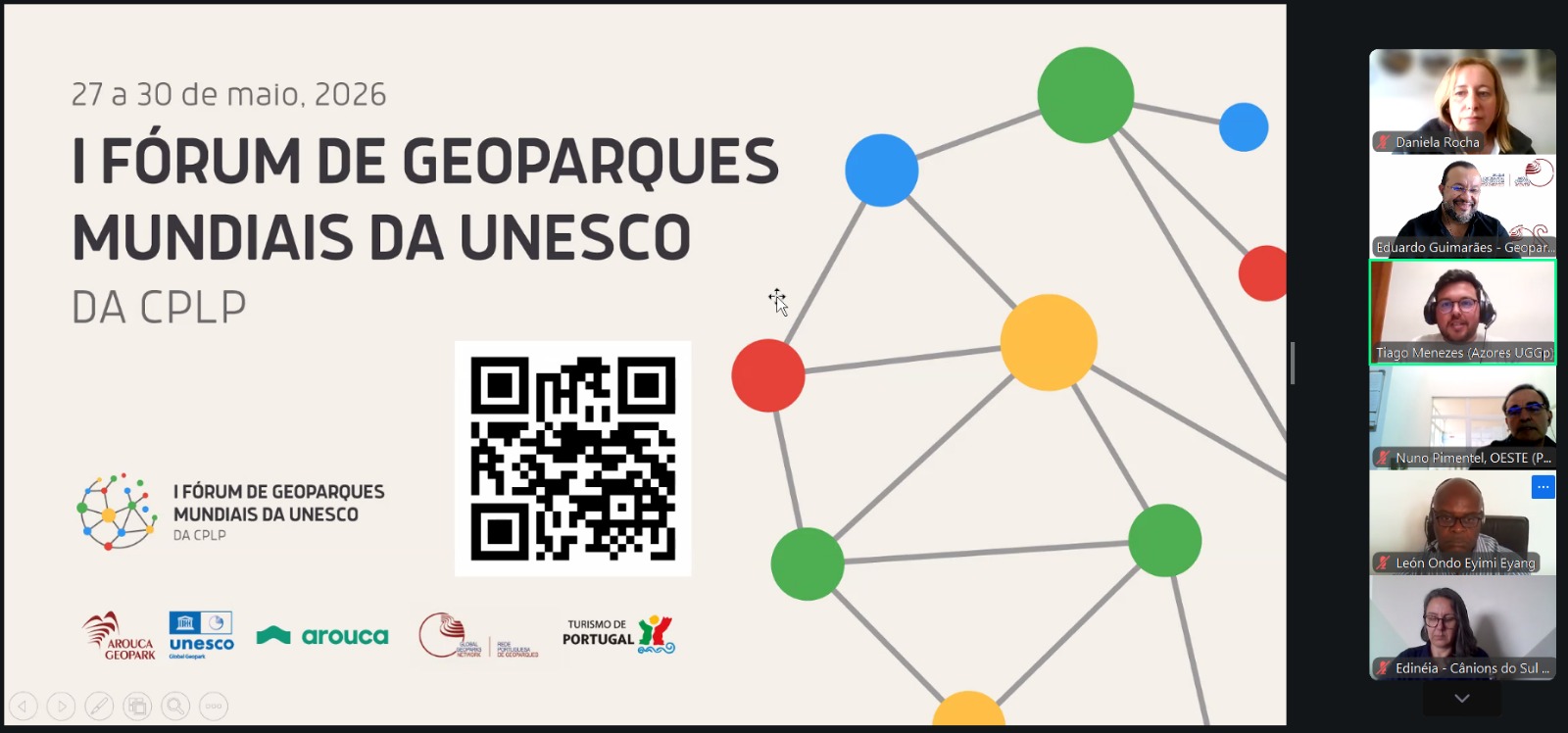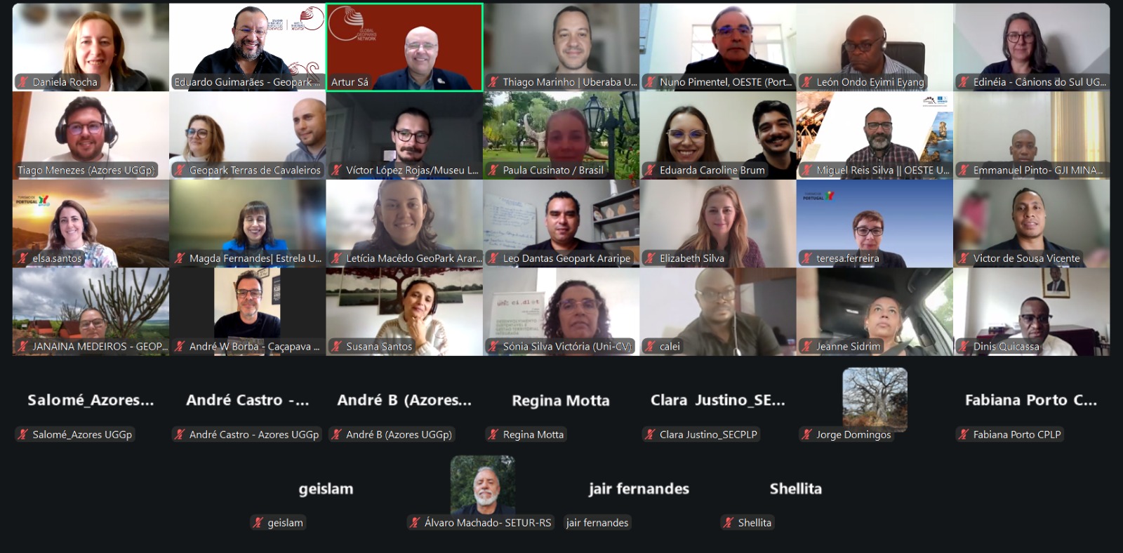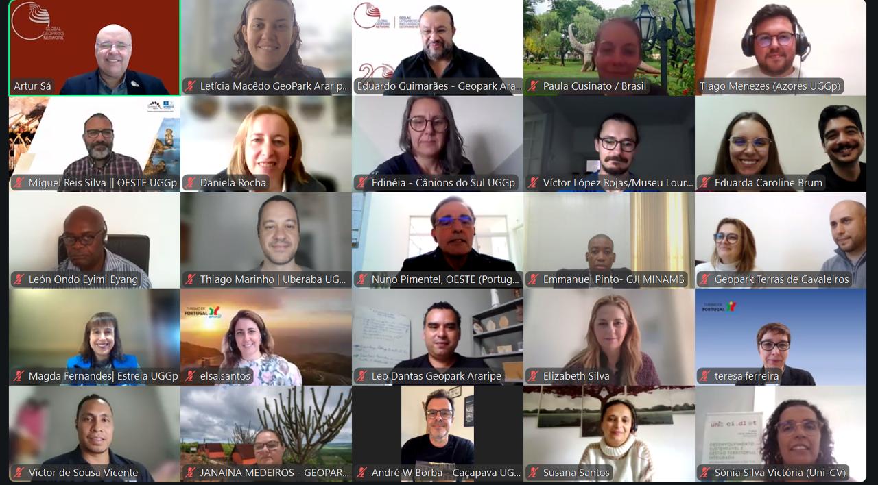 O webinar contou com a participação de lideranças da GGN e representantes nacionais e representantes de diferentes geoparques que discutiram sobre governança e desenvolvimento.
