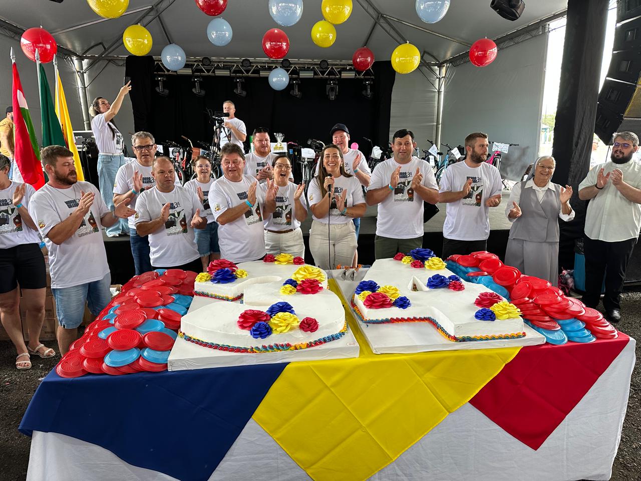 O ponto alto do dia aconteceu com o corte do bolo, onde a comunidade pôde cantar parabéns para a cidade, seguido pelo aguardado sorteio de 34 bicicletas, uma representação especial para cada ano de história e emancipação de Morro Grande.